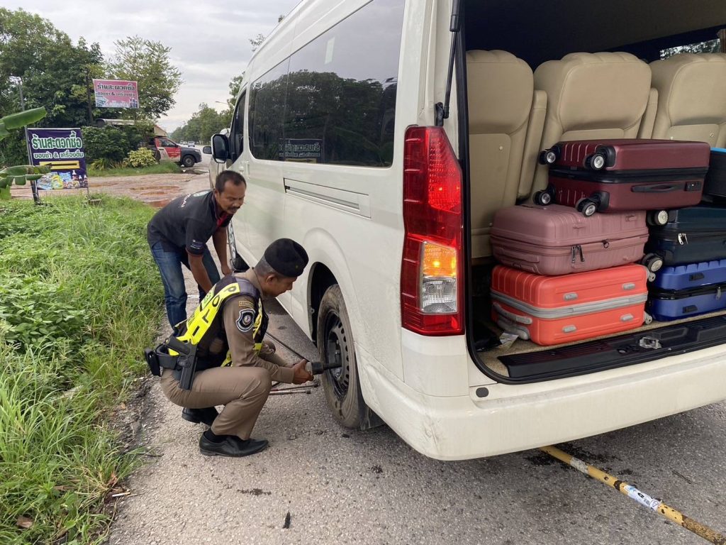 เหตุการณ์ดังกล่าวเกิดขึ้นเมื่อรถตู้ได้เกิดยางระเบิดในขณะวิ่งผ่านพื้นที่รับผิดชอบของเจ้าหน้าที่ตำรวจทางหลวง เจ้าหน้าที่ตำรวจทางหลวงไชยา จึงได้ทำการติดต่อช่างเปลี่ยนยางอะไหล่เพื่อให้รถสามารถเดินทางต่อไปได้อย่างปลอดภัย โดยมีการให้บริการจาก ด.ต.ชัยวัช เผือกแก้ว (พลขับ) และ ด.ต.วีรวัส รัตนพรหม (พงว.) ซึ่งให้บริการด้วยความรวดเร็วและประสิทธิภาพ